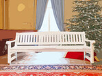 Wie immer wird das Gespräch auf einer Parkbank geführt. Die Bank steht im Advent im Festsaal des Schlosses, wo der Weihnachtsbaum wie jedes Jahr mit historischem Christbaumschmuck dekoriert wird.