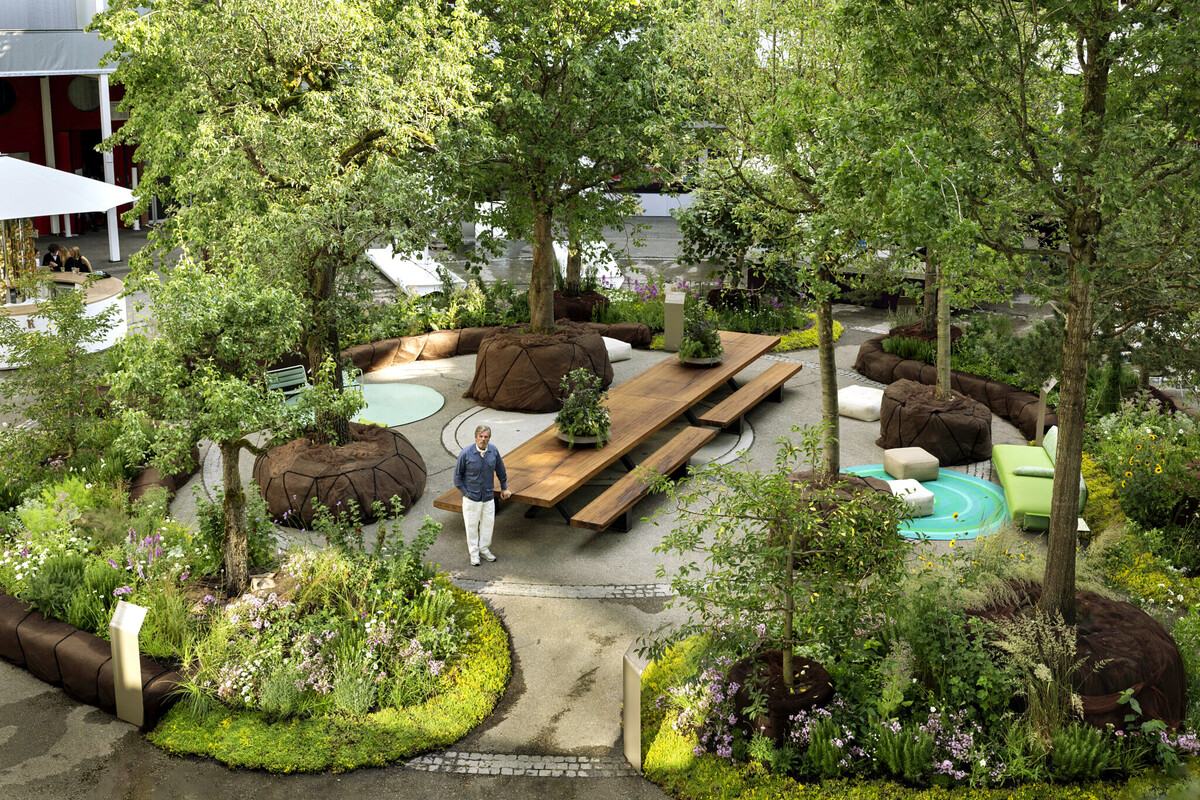 Die Installation „Flora Renaissance“ im Rundhof der Art Basel 2025 interpretierte die Streuobstwiese in moderner Weise. Obstbäume, Laub- und Nadelgehölze, Sträucher, Stauden und Gemüse fügten sich zu einem artenreichen Lebensraum zusammen. Präsentiert wurde ein Modell eines Lebensraumes, das zu einem stabilen Mikroklima führt, hochwertige Ernten bringt und die Biodiversität fördert.