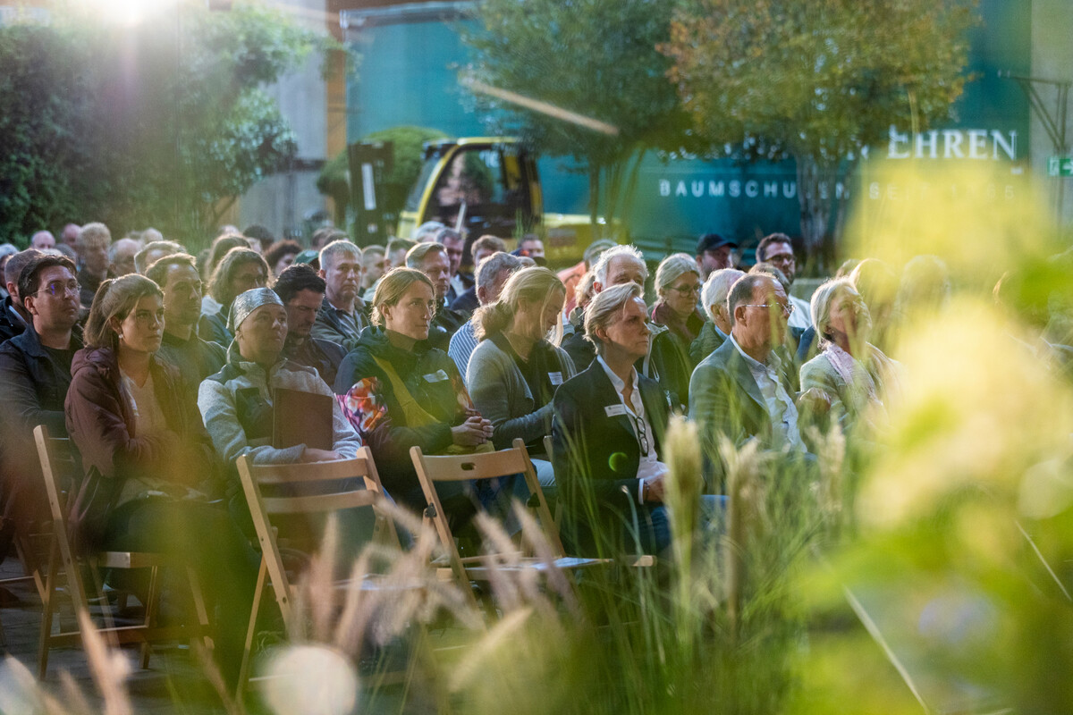 Auch Landschaftsarchitekt Henning Breimann von Breimann + Cie forderte in seinem Vortrag auf, die Komplexität unserer Entwürfe zu steigern, um die Biodiversität zu stärken. Hinsichtlich Bäume und Klima bräuchten wir ein transgeneratives Denken und mehr Demut im Umgang mit unserer Schöpfung. Breimann holte weit aus und referierte über den Wert von Wald, Hecken, Wasser und Boden, sowie die Bedeutung von oralen und olfaktorischen Erlebnissen im Garten.