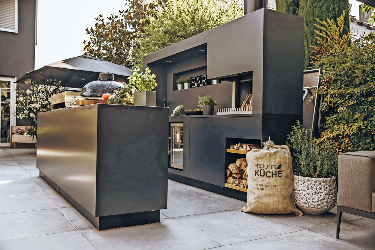 Der Wandel vom funktionalen Element zum sozialen Mittelpunkt im Garten beschreibt die FREILUFTMANUFAKTUR mit der sogenannten Ambienteküche.