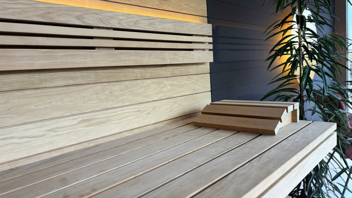Neben klassischer Saunaausstattung in Espe natur oder Thermofichte rustikal ist thermisch behandelte Espe neu im Portfolio erhältlich. Dieses edle Holz überzeugt durch eine leicht dunklere, warm wirkende Farbgebung und verleiht der Saunakabine ein besonders stilvolles Ambiente.
