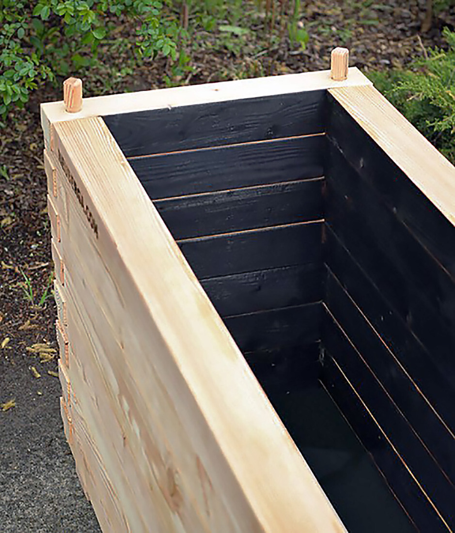 Innen geflammt oder geköhlert wie beim japanischen Konservierungsprinzip Yakisugi: Die Hochbeete von Neuberga erhalten dadurch einen besonderen Schutz. So braucht es innen keine Kunststofffolie, die später Boden und Ökosystem belasten könnte.