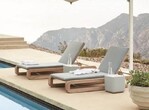 Die Franck Sonnenliegen zeichnen sich durch den für Vincent van Duysens charakteristischen Sinn für Reinheit und Essentialismus aus. Funktionalität, Langlebigkeit und Komfort werden mit raffinierten Details, Handwerkskunst und präziser Ausführung kombiniert. Luxuriöse Polster sorgen für Komfort und die seitlich langlaufende Ablagefläche aus Teakholz bietet genügend Platz für Handtücher, Bücher und Drinks.