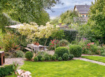 Unterschiedlich große und unterschiedlich ausgestattete Gartenräume fügen sich harmonisch zu einem natürlichen Wohngarten zusammen. Er bietet Gelegenheit im Freien zu kochen und zu essen, aber auch kleine Nischen, um sich mit spannender Lektüre zurückziehen zu können. Ein Schatten- und ein Wiesenzimmer vervollkommnen dieses grüne Wohnparadies.