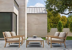 FRANCK - Die Kollektion setzt sich aus neun Möbelstücken zusammen: Einem Loungesessel, einem Dreisitzer-Sofa, einem Diningsessel und Diningstuhl, einer Sonnenliege mit doppelt beweglicher Rückenlehne und integrierter Ablage, einem Esstisch und drei verschiedenen Couchtischen. Alle Möbel bestehen aus nachhaltig angebautem Teakholz, bei dem zwischen einer „natural“ oder „weathered“ Version gewählt werden kann. Die die Formensprache der 1930er-Jahre aufnehmenden Möbelobjekte passen zu klassischen als auch zu modernen Umgebungen. www.sutherlandfurniture.com