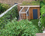 Grundstücksgrenzen: Kletterpflanzen sorgen dafür, dass aus kahlen Wänden attraktive Raumgrenzen werden. Der Hof wirkt größer, die Pflanzen beim Nachbarn werden optisch eingemeindet. Nutzungswechsel: Wenn die Kinder mal groß sind, wird aus dem Sedumbegrünten Spielhaus ein Gerätehaus. Der geschützte Spielbereich wird einfach umgewidmet. Bambus: Pflegeleicht, raumwirksam und subtropisch: Mit Phyllostachys vivax f. aureocaulis hat Craine drei Fliegen mit einer Klappe geschlagen. Und raus aus dem Beet kann der Bambus auch nicht. Kunstrasen: „Da wächst doch kein Rasen“ – richtig. Hier haben die Gärtner AstroTurf verlegt. Kann man machen, muss man mögen. Perlkies wäre eine Alternative. Holzdeck: Belagsflächen – bis auf den...