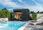 Design-Saunahäuser von Westerhoff vereinen Ästhetik und Komfort. Die Fassadenverkleidung des vollgedämmten Saunahauses besteht auf Wunsch entweder aus Trespa, also aus HPL-Platten, oder aus edlen, annähernd astreinen rautenförmigen Rhombusprofilen. Auf der Sichtseite sind die Rautenleisten aus sibirischer Lärche gefertigt und aus Designgründen geriffelt gesägt und mit hochwertiger Öllasur in einem Patinafarbton vorbehandelt. Die Befestigung beider Fassadenmaterialien ist nicht sichtbar, damit das edle Erscheinungsbild der Fugen nicht gestört wird. Eine ausgeklügelte Flachdachkonstruktion mit hochwertiger Dachdeckung erlaubt es, auf Blechabdeckungen an den Dachkanten zu verzichten. Auch diese Aspekte wie Sonnenschutz wurden beachtet:...