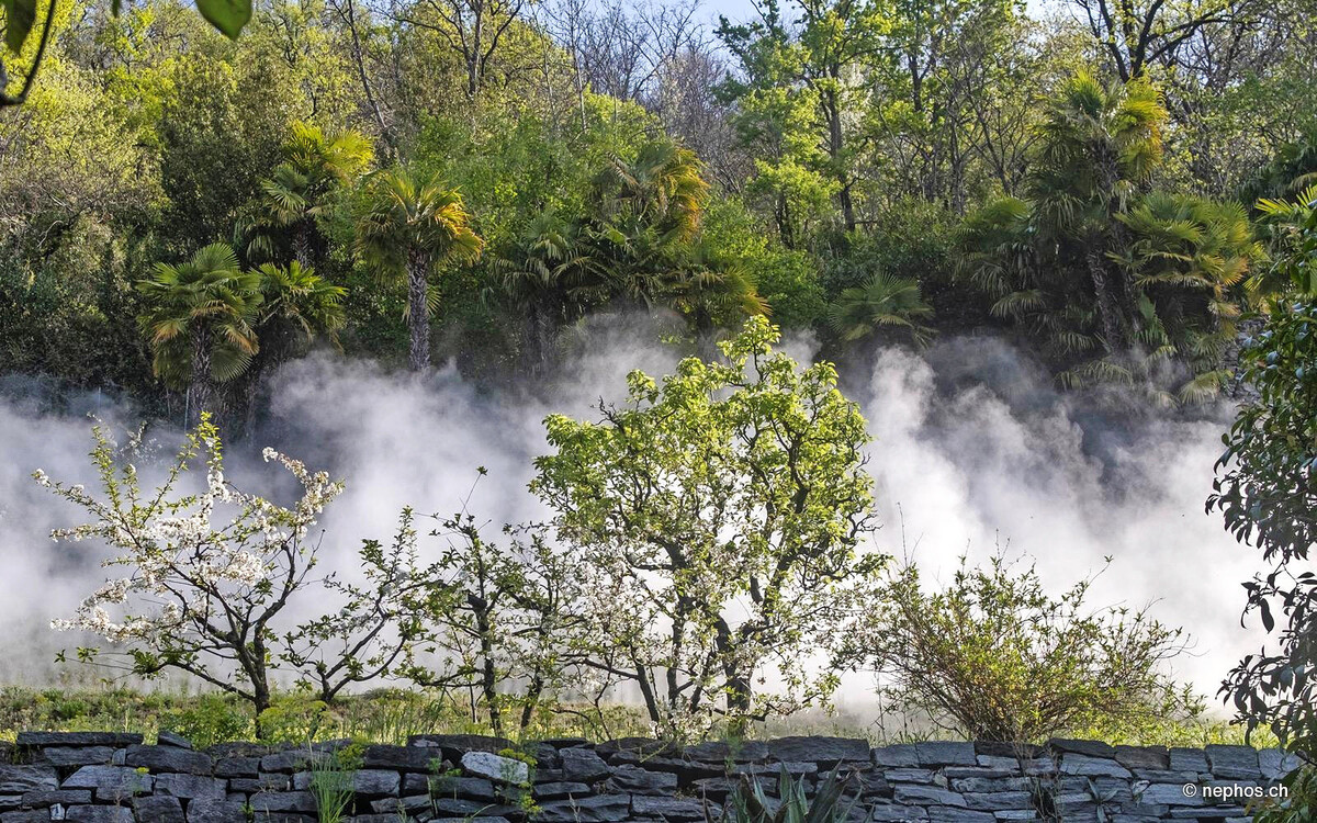 Neue Impulse zum Thema „beleuchtetes Wasser“ kommen aktuell aus dem Tessin. 2015 ist das Unternehmen Nephos Swiss Fog erstmals mit einer Nebellandschaft an der Giardina aufgefallen. Seither hat es zahlreiche Außenräume mitgestaltet, beispielsweise die Piazzetta Remo Rossi in Locarno oder den Spa-Bereich der Villa Arzaga Garda im italienischen Calvagese della Riviera.