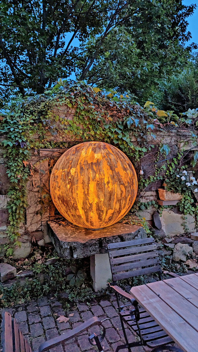 4Die Groeber Mannheim Lichtwerke GmbH hat sich unter der Marke Epstein auf Lichtobjekte spezialisiert, die sich tagsüber als skulpturale Elemente in Außenbereiche einfügen und erst bei Dämmerung als Lichtquellen offenbaren. Für die Unikate kommt Naturstein zum Einsatz, zum Beispiel Buntschiefer für die Serie „Eifel im Herbst“. Unterschiedliche Mineralschichten im Stein filtern das Licht so, dass je nach Lichtfarbe immer neue Strukturen und Muster auf der Oberfläche sichtbar werden.