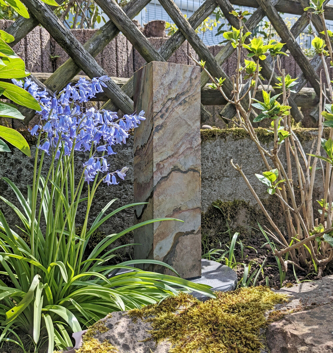 Im starken Kontrast dazu steht der tiefschwarze Schiefer der Serie „Eifel bei Nacht“. Er lässt farbiges Licht nahezu ungefiltert passieren, wodurch klare und unverfälschte Farbakzente im Garten gesetzt werden können.