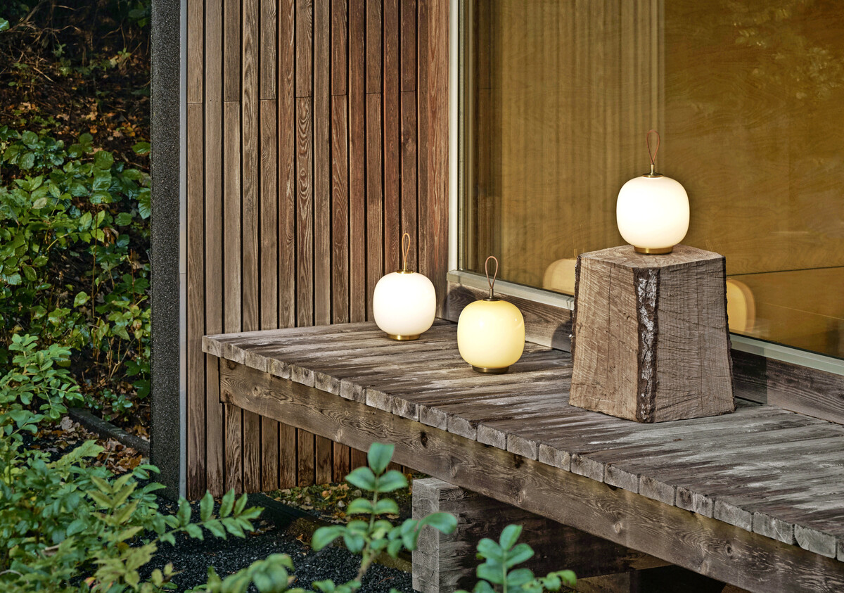Louis Poulsen präsentiert die neue tragbare VL 45 Radiohus Portable Leuchte in drei Farbvarianten. Sie basiert auf der VL 45 Radiohus Pendelleuchte des dänischen Architekten Vilhelm Lauritzen aus den späten 1930er-Jahren. Sie ist aus glänzendem, mundgeblasenem, mehrlagigem Glas und mit Messingdetails gefertigt, wobei die feinen Haarlinien und die lackierte Oberfläche hier verhindern, dass sie mit der Zeit patiniert. Zusätzlich ist sie mit einem Ledergriff ausgestattet. Die gelbe Glasversion hat Details aus patiniertem Messing und wird mit einem dunkleren Ledergriff geliefert. Das Licht kann in Stufen oder stufenlos durch Antippen des Messingteils gedimmt werden.